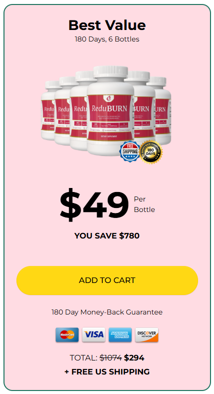 If you’re serious about supporting your metabolic health and achieving your weight management goals, this is your chance to secure ReduBurn at the lowest possible price—with a 180-day 100% money-back guarantee to try it completely risk-free.